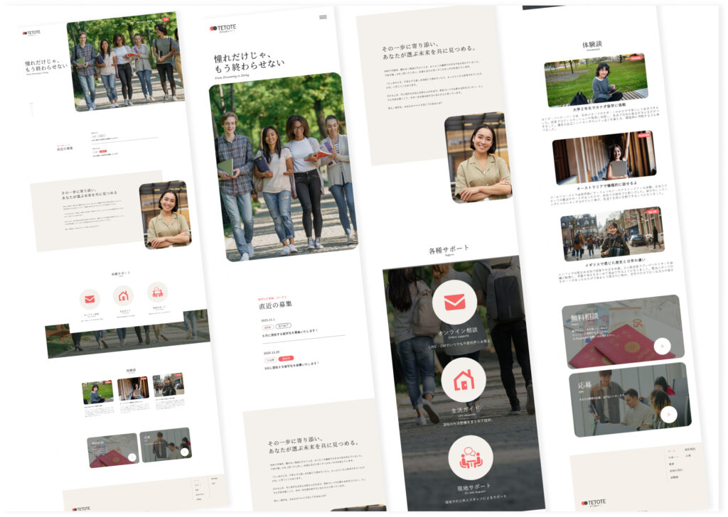 写真や要素に角丸を取り入れることで、硬さを抑え、相談しやすい安心感のある印象を演出しています。