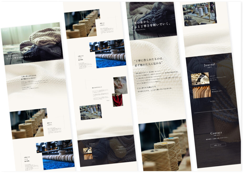 また、フォントやベースカラーにはやわらかさのある要素を選び、ニット素材が持つ温かみを視覚的に表現しました。